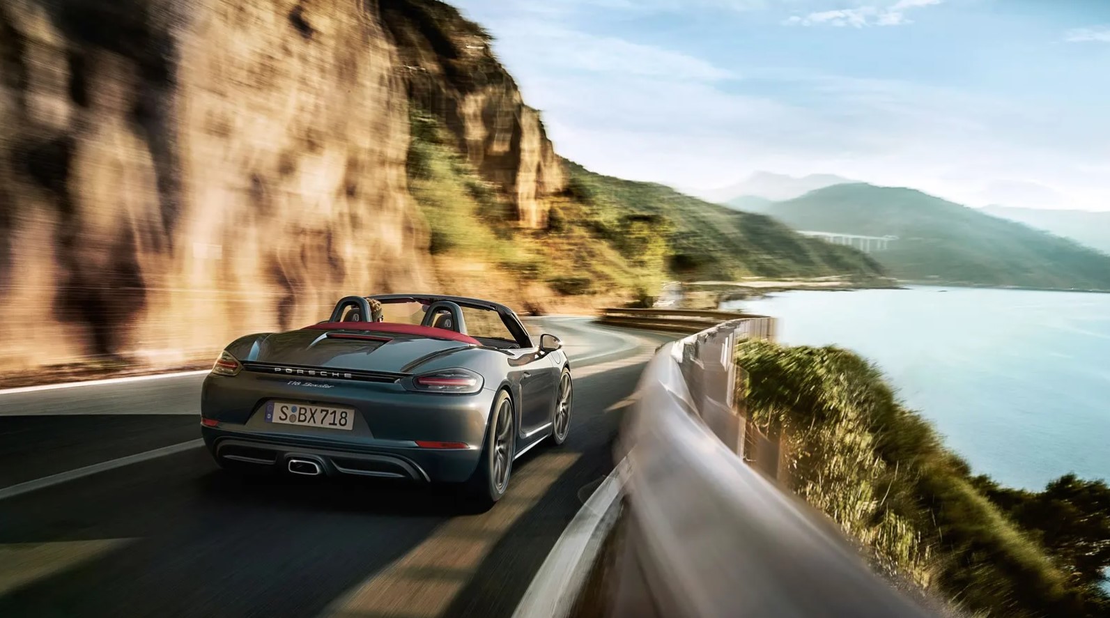 On the outside, there is an immediately apparent difference between the two cars- as despite both having two doors, the Cayman is a coupe while the Boxster is a cabrio. There are also tinted headlamps, 20″ all-black alloys, large air intakes, front spoiler, adaptive rear spoiler and also large tailpipes.