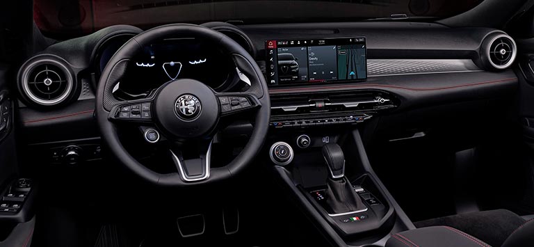 On the outside, the extended curve below the waist rail is called the “GT Line”, and is a line that connects the rear and front lights of the car. On the front, however, the Alfa “Scudetto” shield is now more distinct than ever before. The 3-leaf clover style design synonymous with Alfa has been converted into front air intakes to cool the engine. The headlights are termed as the “3+3″ matrix-style designs, which has features like welcome and goodbye lights. The headlights also auto-dim and adapt as per the road conditions and surroundings. The rear of the car has a curve-like design that passes from either side of the car and is a unique feature to the Tonale. As for the wheels, there is an option available between 17″, 18″, 19″ and 20” wheels which are all available as an option. Choices, choices!