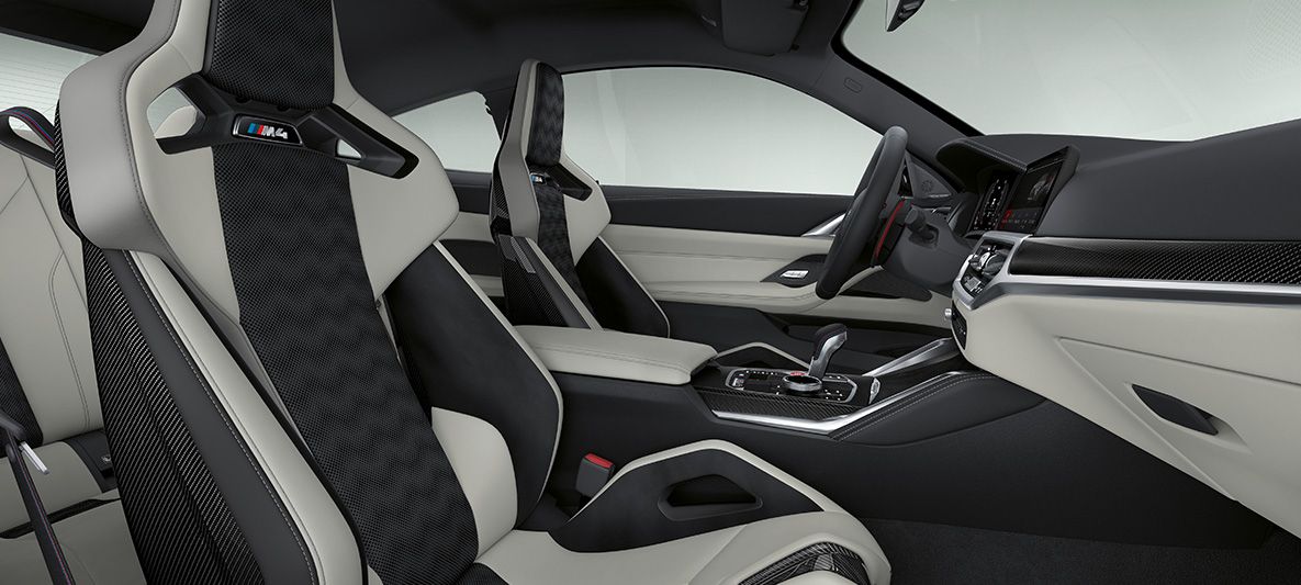 Certain performance parts specific to the M series are also available here, such as an M-specific carbon splitter and rear wing, a carbon rear winglet and air breather for cooling, and a choice between 20/21″ Frozen Gold Bronze wheels and 19/20″ Frozen Gunmetal Grey wheels. On the inside as well, the steering wheel, interior trims, door finish and floor mats all are unique to the M4. There are also extra-sporty performance parts available as an add-on, which effectively make it a track car for the road!