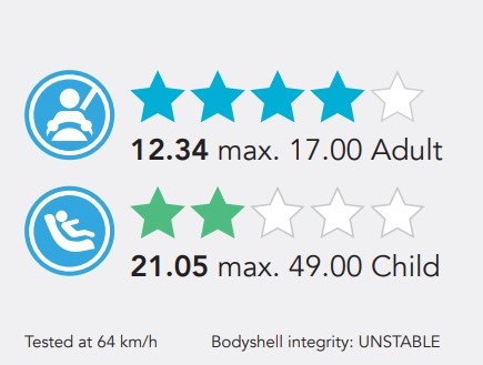 The finer details show the differences between the two though. The Kiger had better adult occupant protection with 12.34 points compared to the Magnite’s 11.85, while in terms of child protection the Magnite scored an impressive 24.88 points compared to the Kiger’s 21.05 points. Despite these seemingly similar scores, the Kiger’s body shell was rated “unstable” while the Magnite’s was rated as being stable. Here are some of the key details from each crash test: