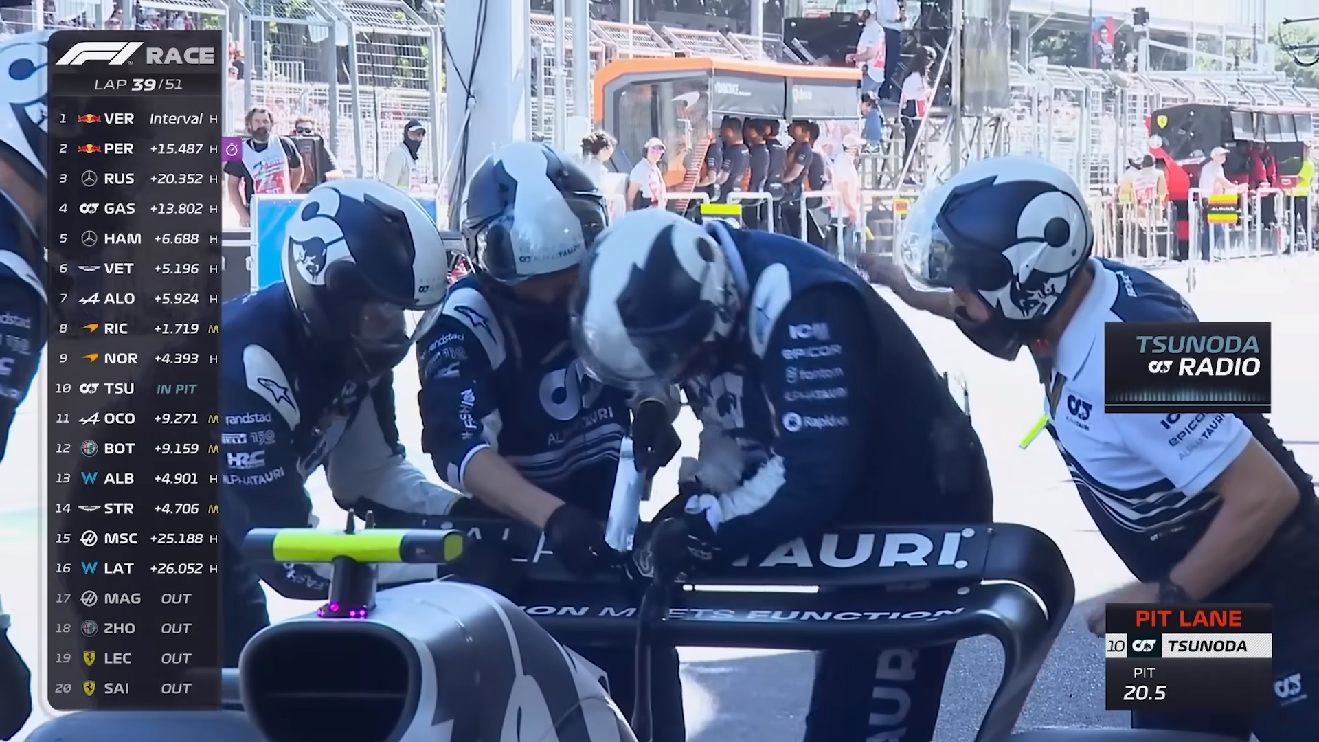 Gasly’s teammate Tsunoda was also in trouble with his own car! The young Japanese driver had only half his DRS flap open, which is of course a breach of the regulations and a possible hazard to other drivers should the stray part fly off and hit another driver. He received a black and orange flag, indicating that he would have to come into the pits and either retire or somehow have the team fix the issue.