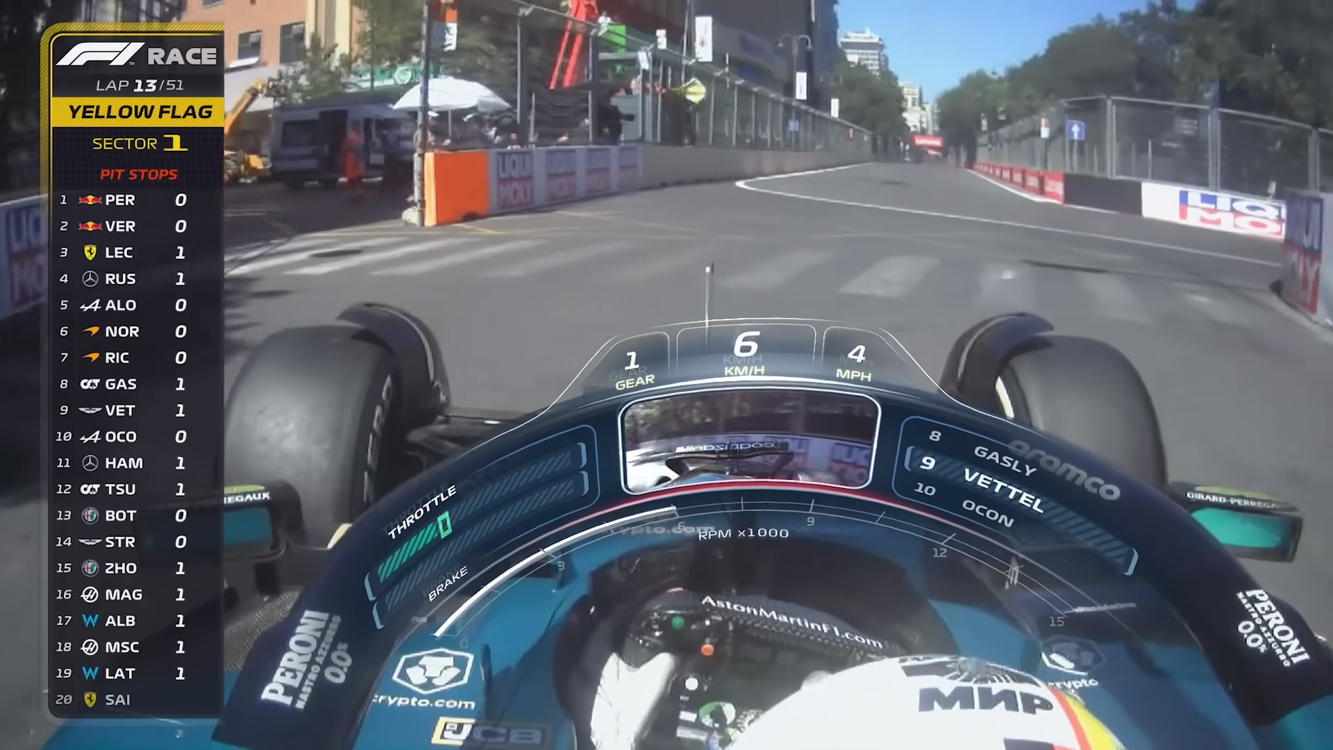 The race would take place under the sweltering sun, a far cry from the race start of the previous race in Monaco. Temperatures ranged in between 46 to 48 degree Celsius. Most drivers chose the medium tyres, while an optimistic handful chose the hard tyre compound. As the drivers made their way around the formation lap, they were preparing their minds to get a good launch owing to the short run upto Turn 1 which wouldn’t let them have much of the slipstream of the car ahead.