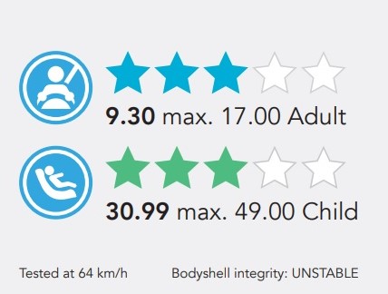 Kia’s Carens MPV has received a 3-star rating at the GNCAP tests. The variant tested had the most basic of safety specifications, with 6 airbags pre-fitted, i.e. two frontal airbags, two side body airbags and two side head airbags. The model was also fitted with ESC, and the crash-tested car fulfilled the UN95 regulatory requirement.